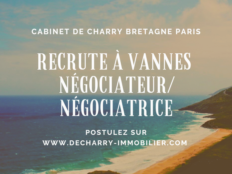Cabinet de Charry Bretagne Paris recrute un(e) négociateur (trice) en immobilier H/F, secteurs Vannes et Morbihan, contrat en alternance